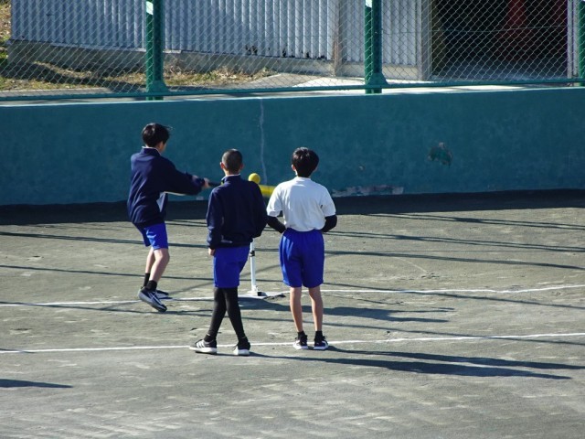 ティーボールを実施しています。野球の簡易版ですが、打つ、捕る、投げるといった基本動作を学ぶことができます。