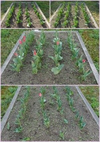 北舎と南舎の間の中庭では、いよいよチューリップの花が咲き始めました。