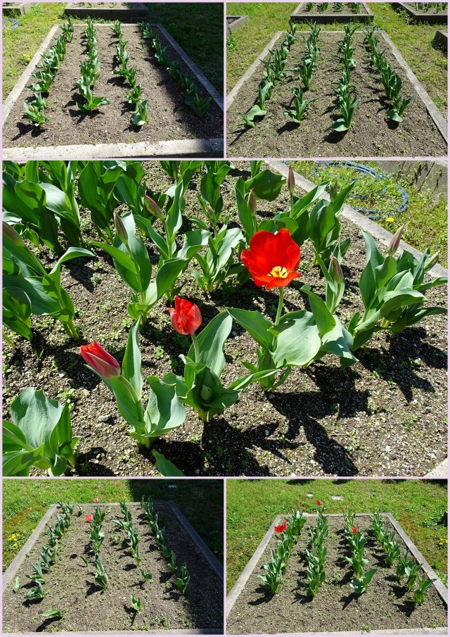 北舎と南舎の間の中庭では、いよいよチューリップの花が咲き始めました。