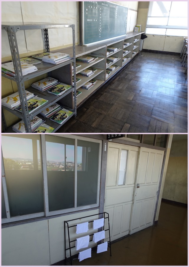 式場の屋内運動場、明日初日を過ごす教室の準備が終わりました。