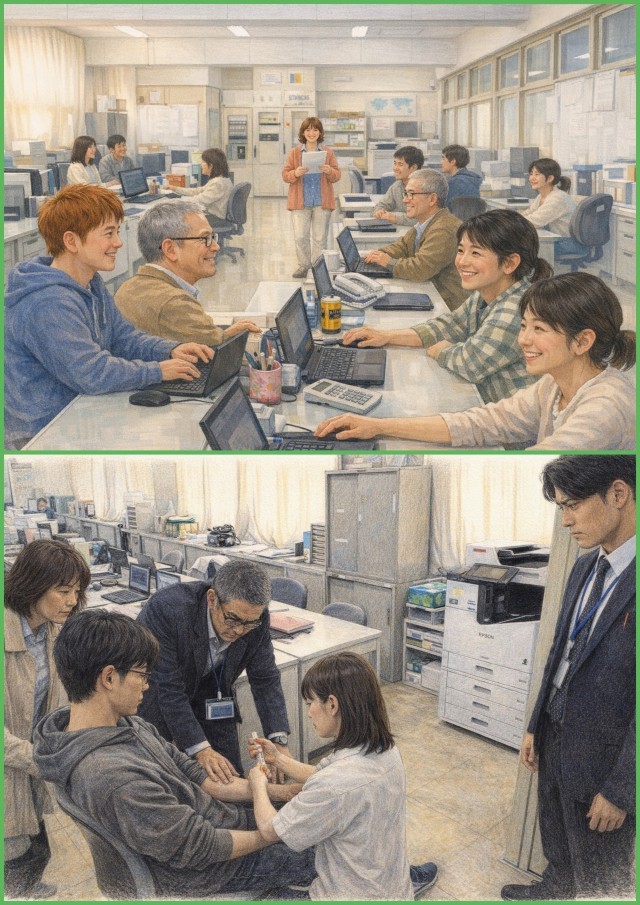 明日、生徒を迎える前に、教職員で毎年行っているエピペン講習会を実施しました。