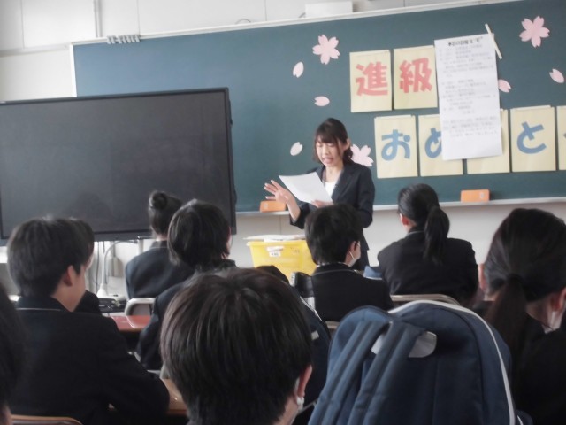 新年度が始まりました。3年生の教室では、それぞれの担任が新しい学級に期待する思いを語りました。新しい仲間との出会いに期待と不安でいっぱいだと思いますが、この出会いを大切にし、みんなでよいクラスを作っていってほしいと思います。