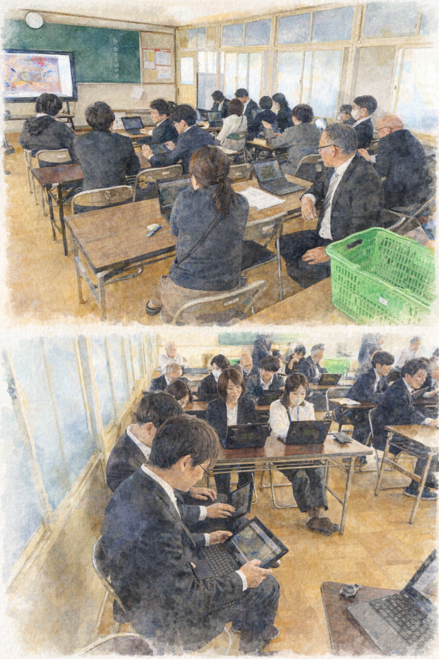 昨日、生徒の下校後に三重大学教職大学院の守田庸一教授をお招きし、本校職員の研修会を開きました。