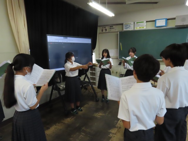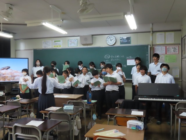 初めということもあり、方向性の確認や目標設定、曲のイメージを考えるなど学級ごとに進めていました。