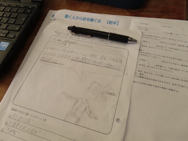 今日は、それぞれの職業について事前に調べたり、講師の方への質問を考えたりしました。
