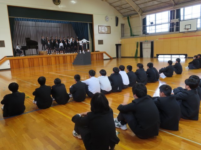今日は体育祭の群団ごとに合唱の聴き合いをしました。