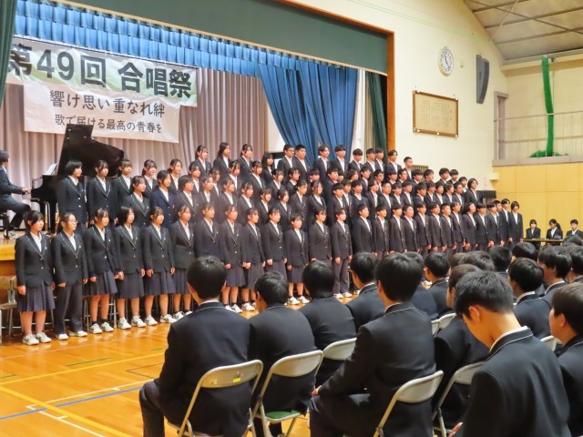 合唱とは「合わせて唱える」ことです。その意味を体現した合唱。みんなで練習した時間が仲間をつなぎ、自信に変えて魅せたすばらしい合唱。「この仲間と歌えてよかった」、そんな感想がたくさんあり、合唱祭の本当のよさを感じられたのではないでしょうか。