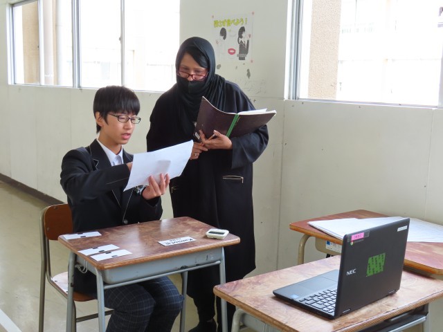 名古屋市営地下鉄の路線図を使って、実際の場面を想定した電車の乗りかえ案内のパフォーマンステストを行いました。路線図を見ながらたずねられた駅までの経路を確認して、案内することができていました。もし、実際に外国人観光客の方にたずねられたら、ぜひこの授業を思い出して案内してほしいと思います。