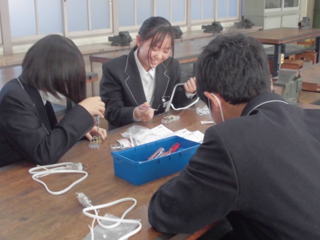 2年生の技術の授業は、ユータップという名称の延長コードを製作しました。被膜はがしや端子の圧着、ねじ止めなどの作業を工具を用いて製作に取り組みましたが、周りの人と協力しながら製作する姿も見られました。もう一つはんだづけを必要とする作品を製作します。今回の実習の反省などを踏まえて、次回の実習にも取り組んでほしいと思います。