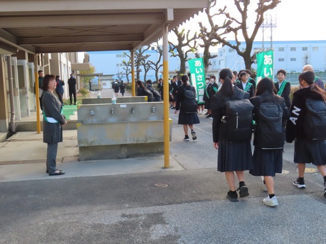 11月27日(木)と28日(金)の2日間にわたり、学校運営協議会の皆様、PTA本部役員の皆様、そして本校生徒会役員・議員が合同であいさつ運動を実施しました。