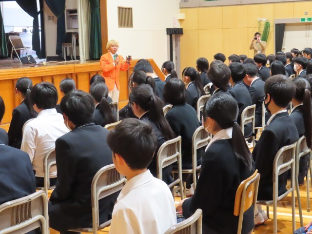 本日、お笑い芸人オレンジ田中さんの、いじめ防止講演が行われました。
