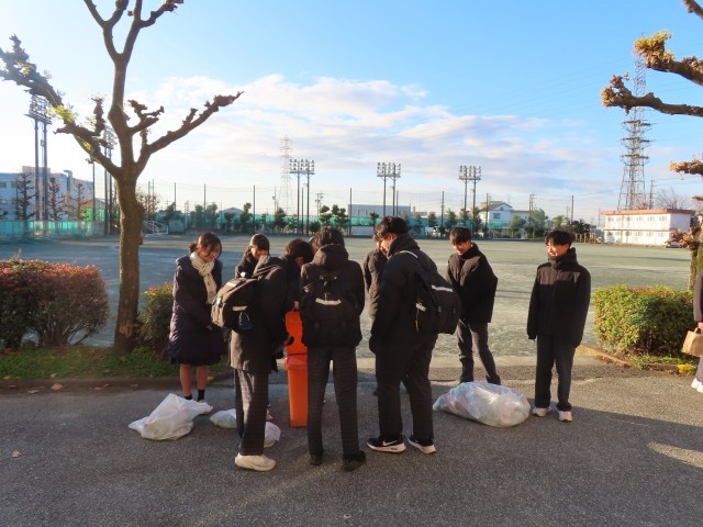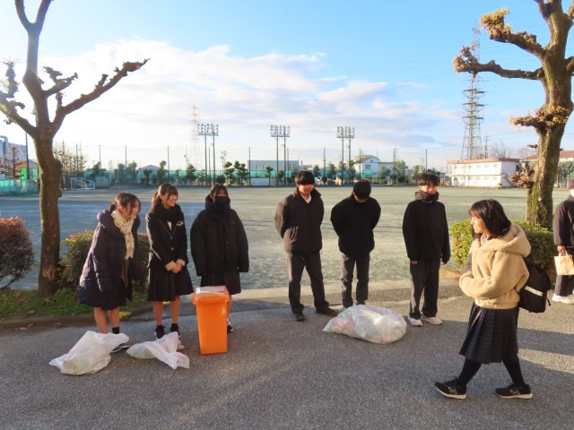 12月のアルミ缶・エコキャップ回収運動を3年生の議員の生徒たちが行っていました。寒い中でしたが,時間いっぱい「みんなのために」働きました。