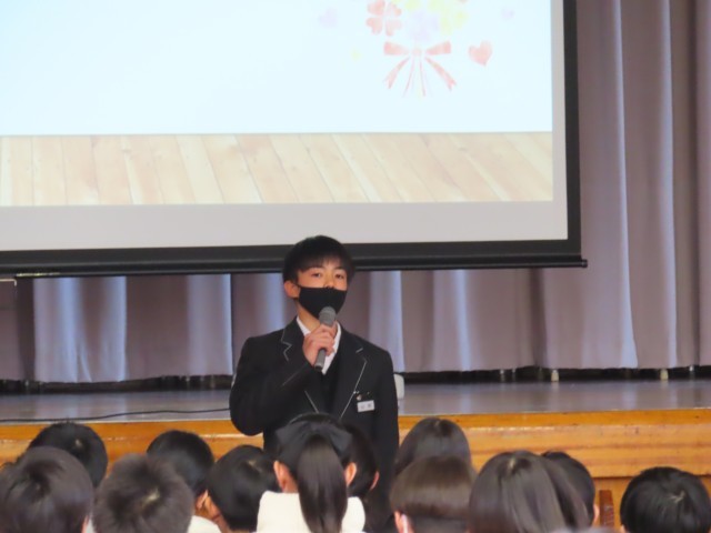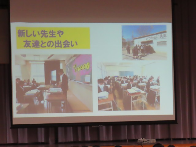 1年生リーダー会は、6年生に向けて言葉や写真で中学校の様子を伝えました。