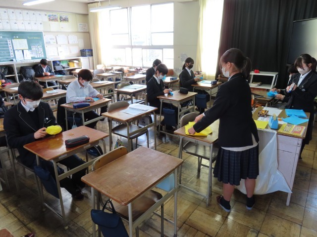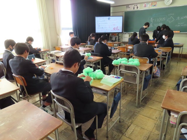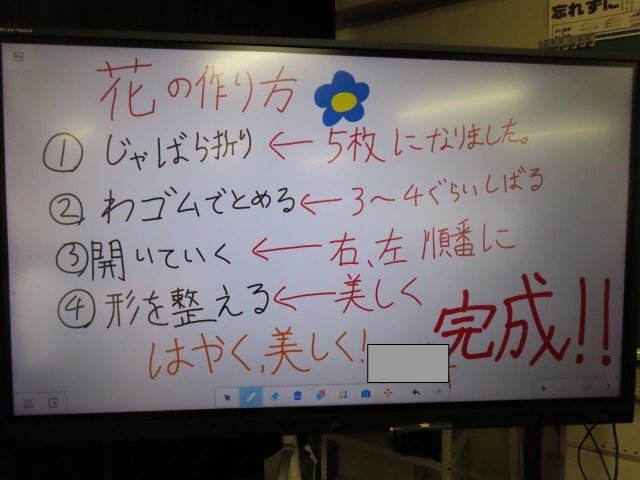 2月5日(木)心を込めて、丁寧に。 公開日 2026/02/05 更新日 2026/02/05 2年生の様子 1・2年生は、6時間目にお花づくりを行いました。3年生を送る会の壁面装飾に使うものです。実行委員が中心となり今日のノルマや注意するポイントを確認し、作業を進めていきました。今は、それぞれ1つずつのお花ですが、これらが集まって、きっと素敵な作品が完成することでしょう。3年生に喜んでもらえるよう、がんばります!!