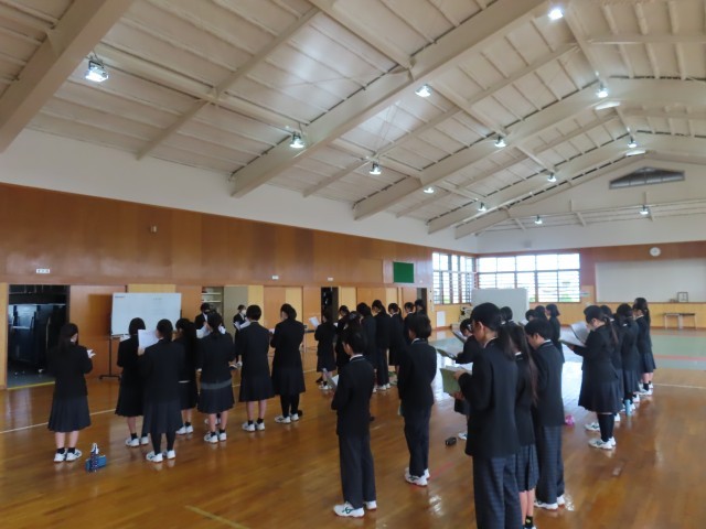 送る会に向けて、1、2年生で合唱練習をしました。