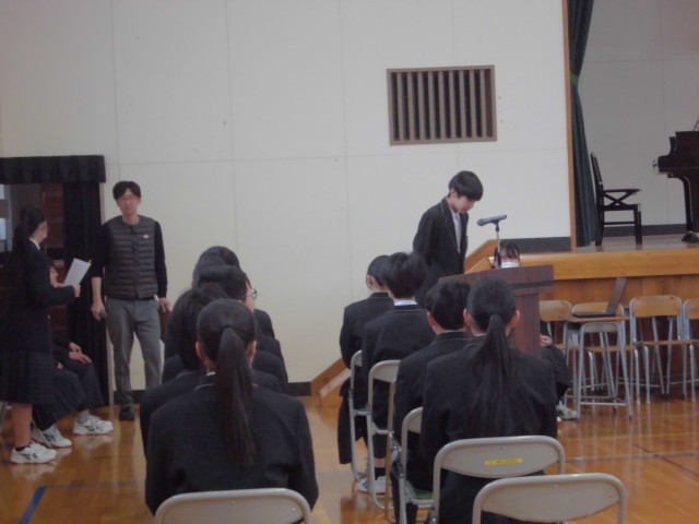 6時間目に、2年生が来週の火曜日の午後にある学年保護者会の練習を屋内運動場で行いました。合唱の練習にも力が入っていました。