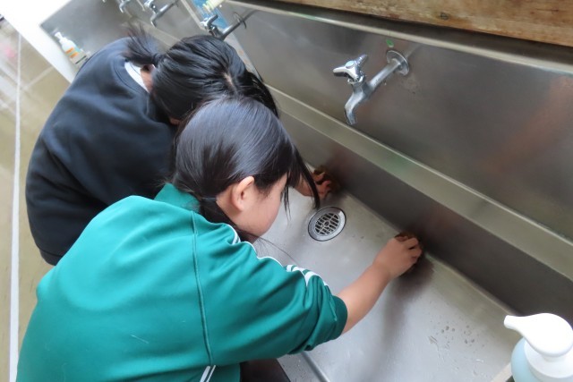 女子バスケットボール部の活動前、2年生の2人が水場の掃除を行ってくれました。