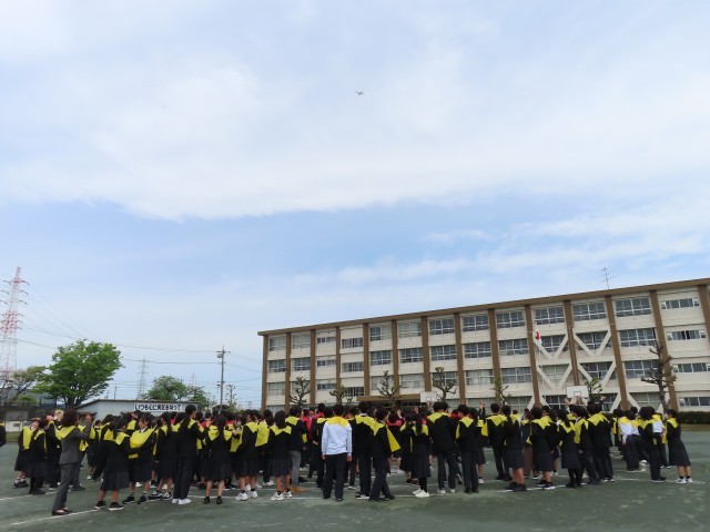 本校創立50周年を記念した、航空写真の撮影が行われました。