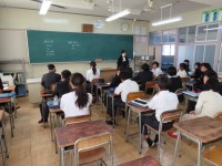 今日の一時間目に屋内運動場で学年集会がありました。夏休みの生活・部活動・職場体験・学習についての話がありました。
