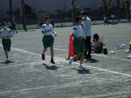 保健体育の授業中に、体力テストを実施しています。今日は1年生が1時間目に長距離走に挑んでいました。