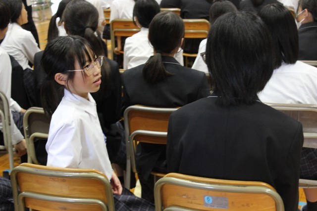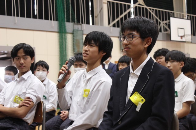 アンパンマンや東日本大震災を題材に、話を聞いたり、隣の人と対話したり、発表したりする中で、「相手や周りの幸せのために」という視点が、生徒の中から自然と生まれてきました。今日学んだことを、これからの学校生活の中でも意識し、大和南中学校のみんなの幸せの実現につなげていけるとよいですね。