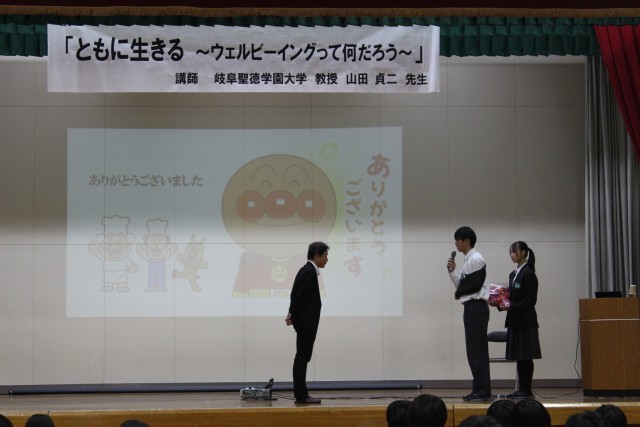 本日は、岐阜聖徳学園大学の山田貞二先生をお招きし、小中合同講演会を開催しました。「ともに生きる~ウェルビーイングって何だろう~」という演題でお話をいただきました。