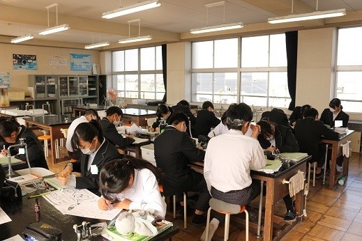 生徒はこれまでの学びの成果を生かし、化学変化をモデル図を用いて説明することができました。