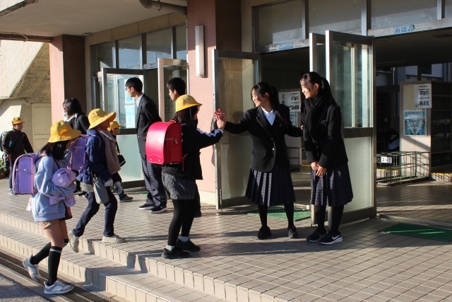 また、上級生である中学生が率先して姿勢よくあいさつする姿は、小学生にとって良い手本となり、活動を通してお互いに良い刺激を受けている様子が伺えました。あいさつの声が次第に大きく、はっきりとしていく様子からも、子どもたちの意欲が伝わってきました。