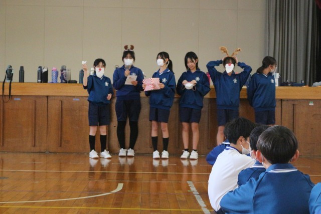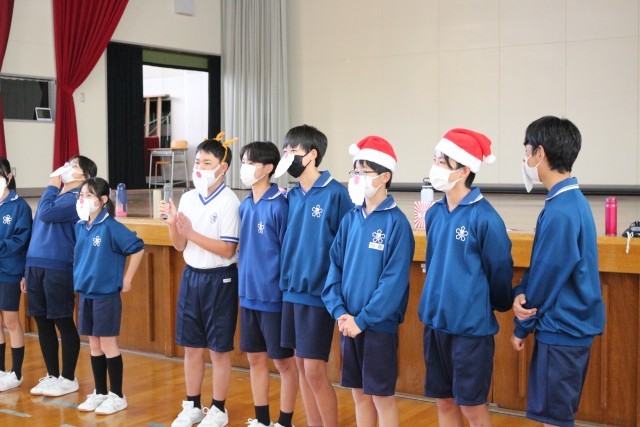 本日6限に学年レクリエーションを行いました。学年で毎日たくさんのありがとうの葉っぱを貼っていき立派なありがとうツリーを完成させたご褒美としてリーダー会を中心として楽しみました。また、クリスマスも近いため、みんなトナカイの鼻をつけて集合写真も撮ることができました。2学期も残り5日。学年としてよい締めくくりをし、2025年を終えましょう。
