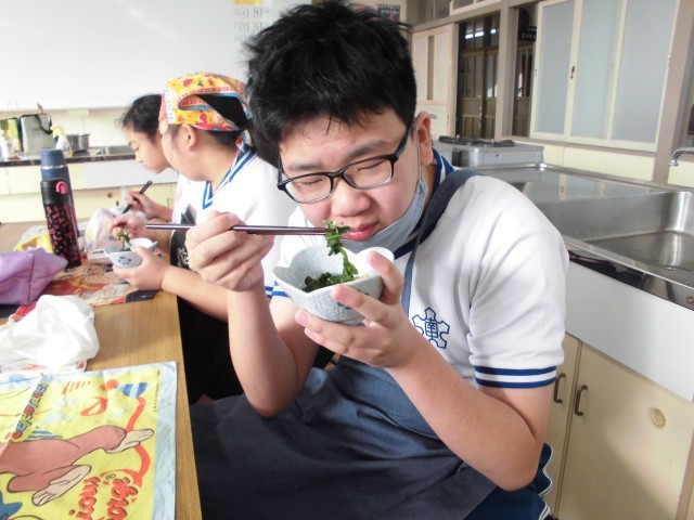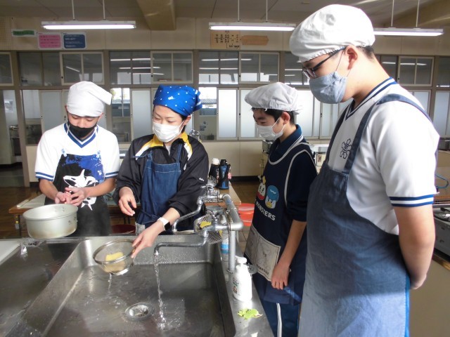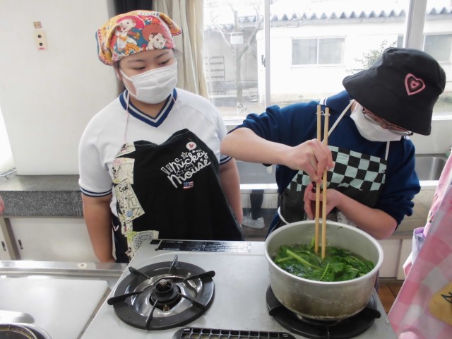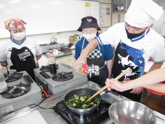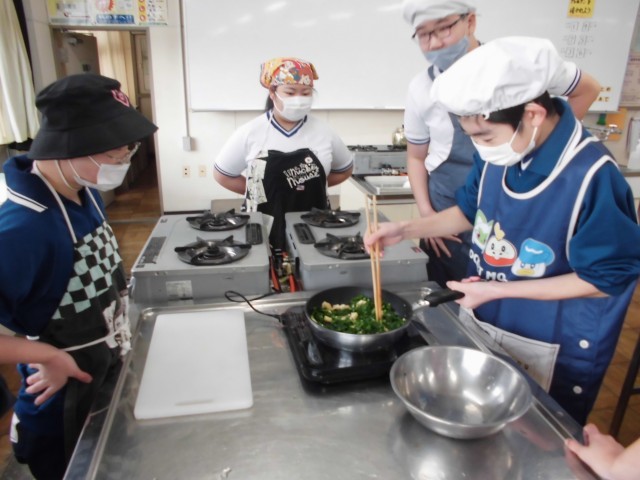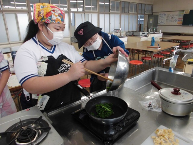 今日の調理実習は、「油揚げと、大根、かぶの葉炒め」を料理しました。