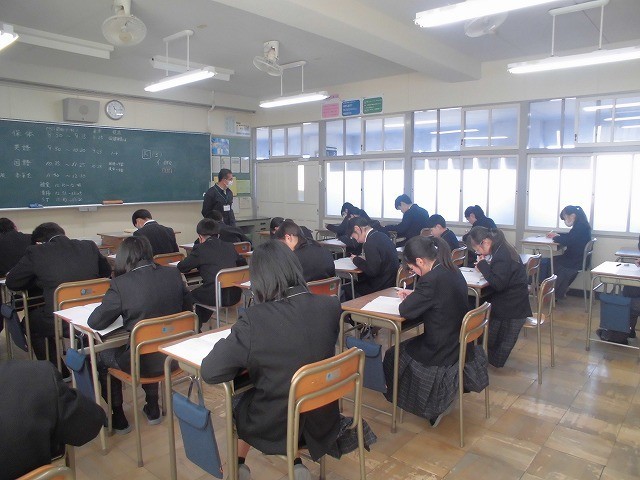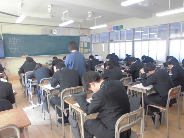 今日から1,2年生は学年末テストが始まりました。どの生徒も真剣にテストに取り組んでいました。