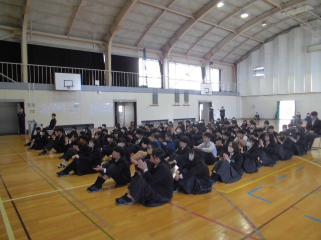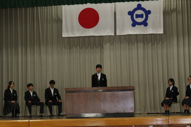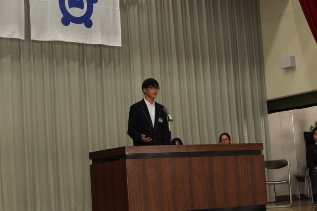 各立候補者が大和南中学校をよくしたいと、さまざまな公約を掲げ演説を行いました。立候補者の演説を真剣な表情で聞き、選挙に対して真摯に向き合う生徒の姿が見られました。