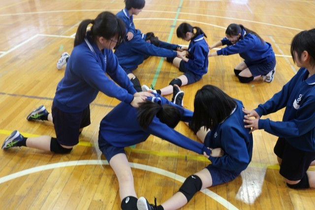 新年度になり、今日も屋運からバレーボール部の元気な声が聞こえてきました。とにもかくにも運動は柔軟(ストレッチ)体操から。今日もけがなくバレーの技術を磨いてほしいと思います。