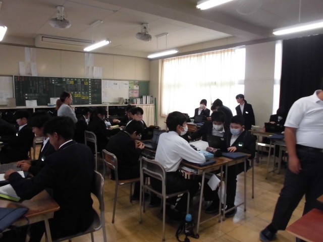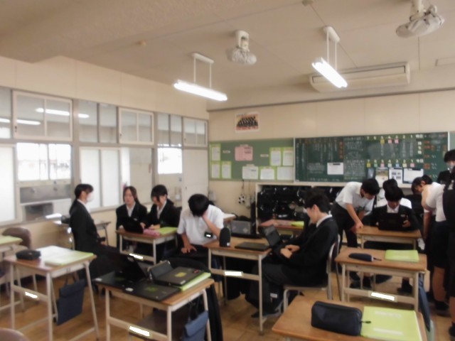 写真は、3年生の総合の時間の様子です。来月の修学旅行の都内班別研修に向けた行動計画を立てました。路線の多い東京都の地図に戸惑いながらも、班員で相談して計画を進めました。無事計画を遂行できるといいですね。