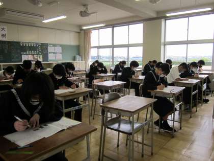 今日と明日は1年生から3年生までNRTテストを実施しています。5教科を2日間に分けて行います。このテストは、一人一人の生徒の結果を分析して、これからの学習の指導対策に生かしていくためのものです。自分の学習の弱点を知ることは、学力をつけるためにはとても大切であると考えています。