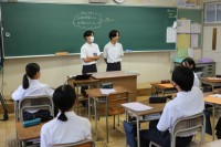 技術の授業で、木を使って作品を作っています。曲がらないように、まっすぐな線を真剣に引いている様子です。素敵な作品が出来るのが楽しみですね。