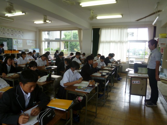 教室では生徒たちが勉強を頑張っている後ろで、授業を見学している実習生もまた「勉強」を頑張っていました。