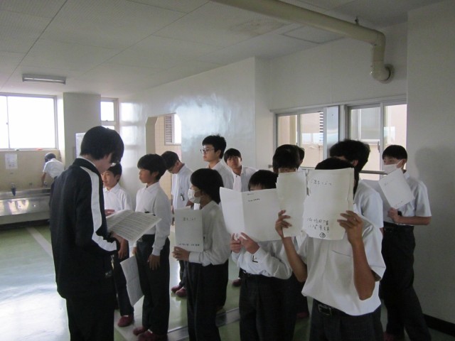 学習コンクールも終わり、合唱コンクールに向けて各クラス練習に取り組んでいます。パートリーダーを中心にして練習に取り組んでいます。