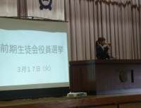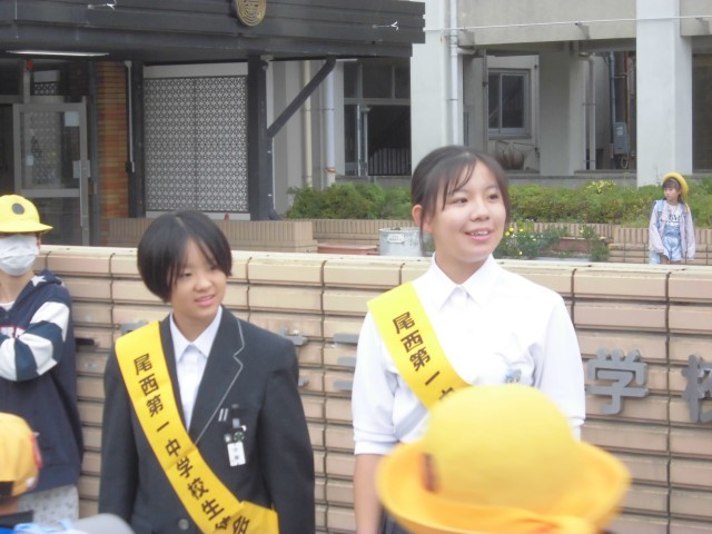 小学生の元気なあいさつに、生徒会役員も大きな声であいさつ返していました。