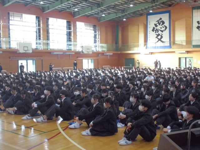 本日、体育館で生徒朝礼を行いました。今週から始まる「人権週間」に関して、生徒会長や校長先生からお話がありました。