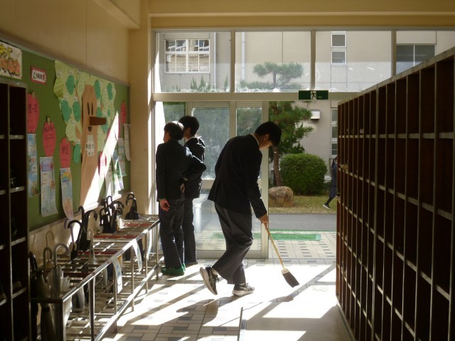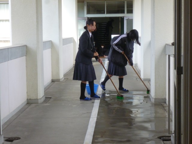 風の冷たさが増す中庭や渡り廊下、昇降口でも丁寧に掃除を頑張ってくれいてます。