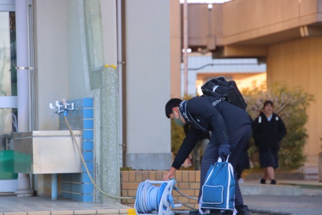 寒さに耐えながらも、花に水やりをしたり、元気な挨拶を返してくれたり、友達と笑顔で話したりする姿が見られました。