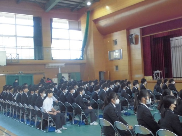 中学校3年間で一番大切な式に向けて、礼のタイミングや座り方を確認しました。
