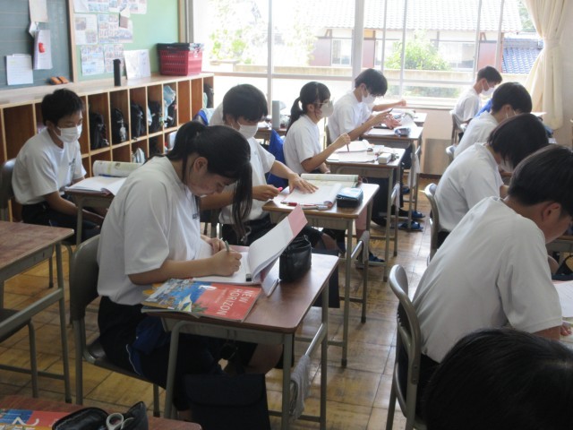 新人戦の疲れもありますが、授業中は集中しています。さすが二中生です。