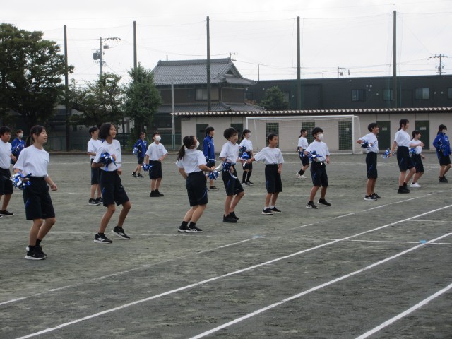 9月から行ってきたブロック体育。1~3年生まで合同で体育祭に向けてパフォーマンスや種目練習に取り組んできました。1・2年生は3年生の背中をみながら、ついていってます。さすが3年生です。中学校生活最後の体育祭ですから、悔いのないよう本気で取り組みましょう。