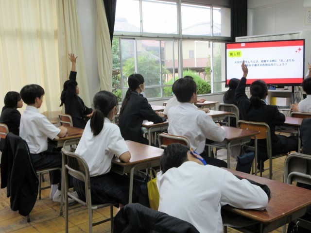 本日は、6時間目に火災想定の避難訓練を予定していましたが、雨天のため各教室で防災に関して資料やクイズを通して学びを深めました。積極的にクイズに参加する姿が印象的でした。
