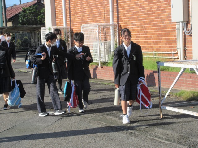 疲れている顔も見られますが、荷物を背負って登校してくれました。今日も1日がんばりましょう。