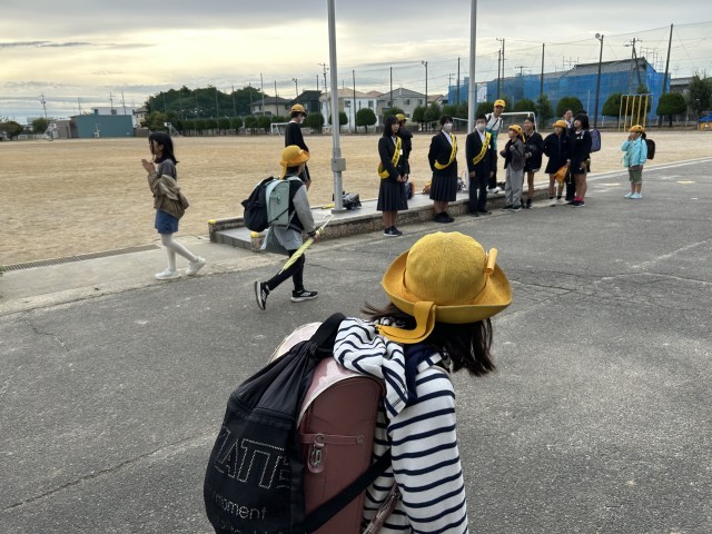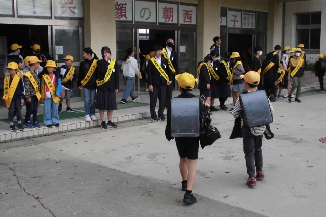 中学生の元気なあいさつに影響を受けた小学生たちもいつも以上に大きな声であいさつをしています。