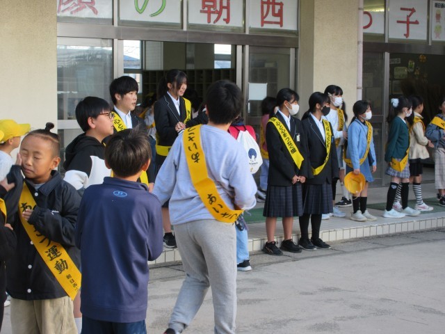 今日は朝日西小学校へお邪魔し、あいさつキャンペーンを行っているこどもたちと一緒にあいさつを交わしました。小学生は朝から元気いっぱいです。笑顔があふれ、1日のよいスタートが切れそうです。