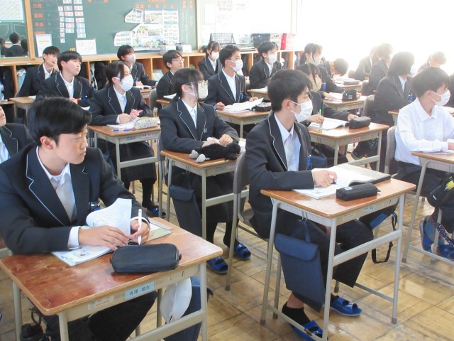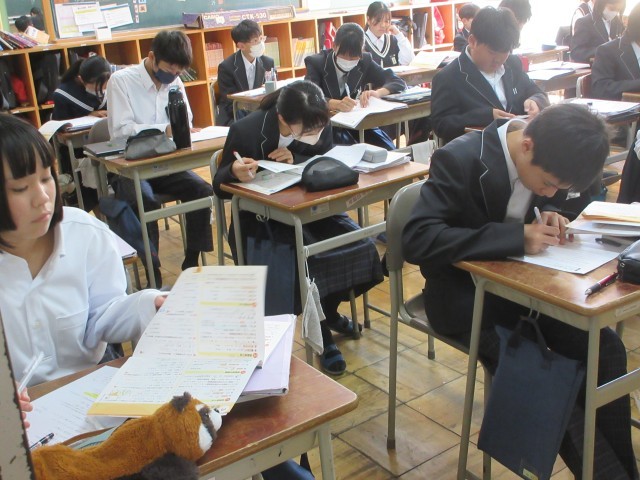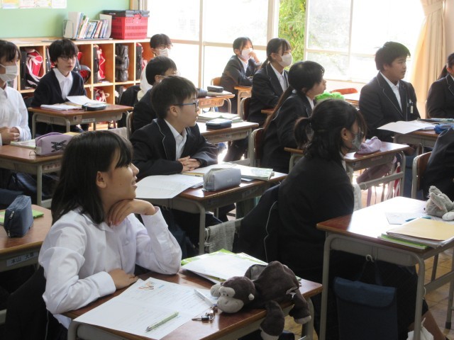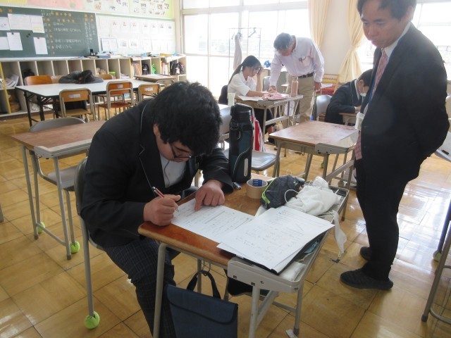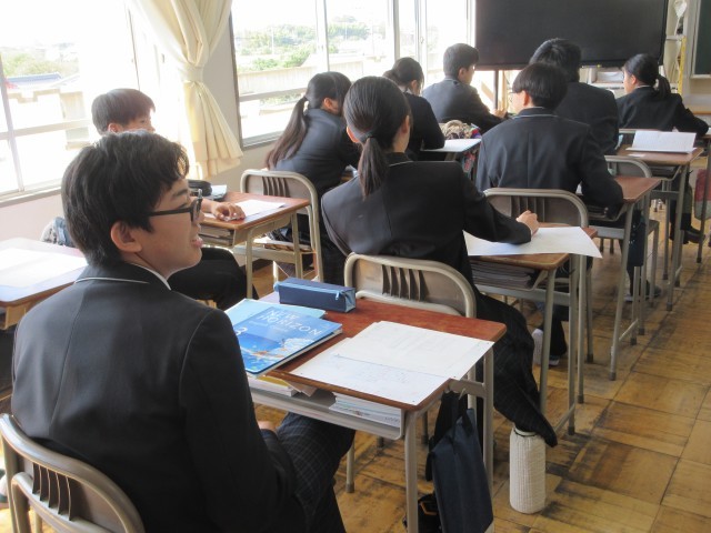 授業中の様子です。姿勢がとてもよく、集中しています。話を聴くときとノートやプリントへ書くときのメリハリがしっかりできています。